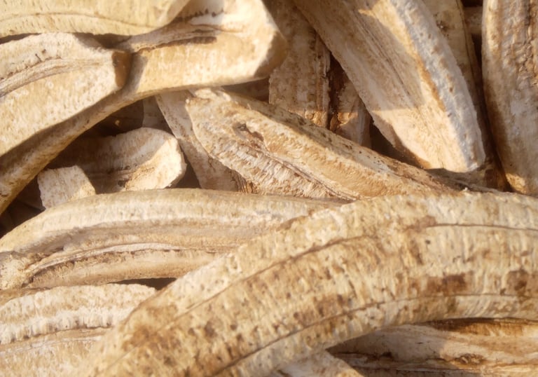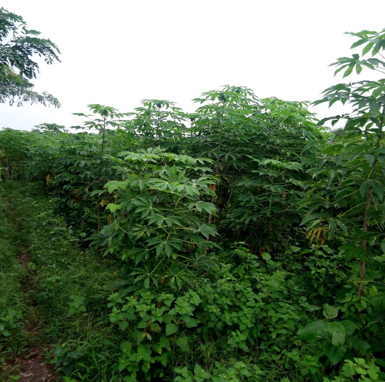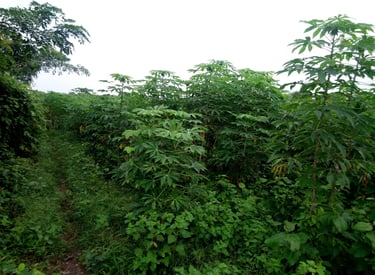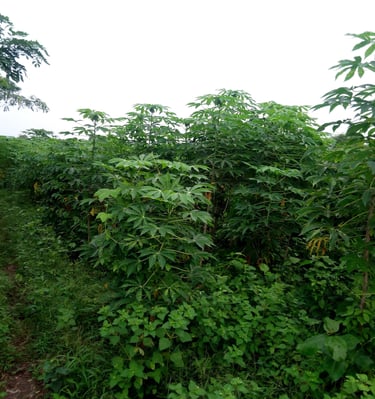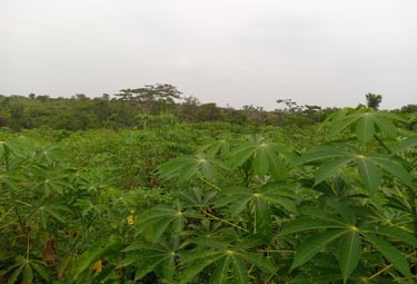 Cassava, plantain, cocoa, coconut, pineapple, ginger, turmeric, and more grown naturally.