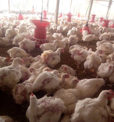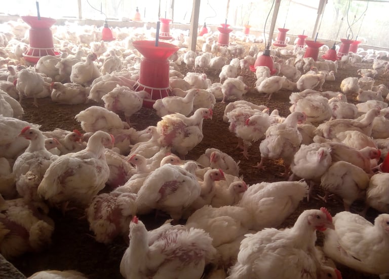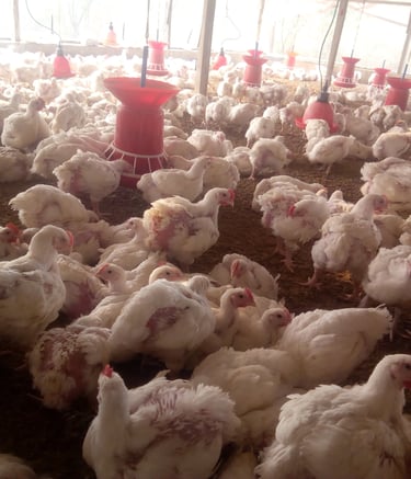 Carefully raised chickens providing fresh eggs and meat, nurtured right on the farm.